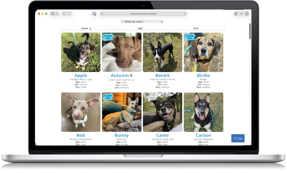 If you are researching options for a website for your animal shelter, please contact us. We can consult with your web developer / agency, or we can assist you with your integration.